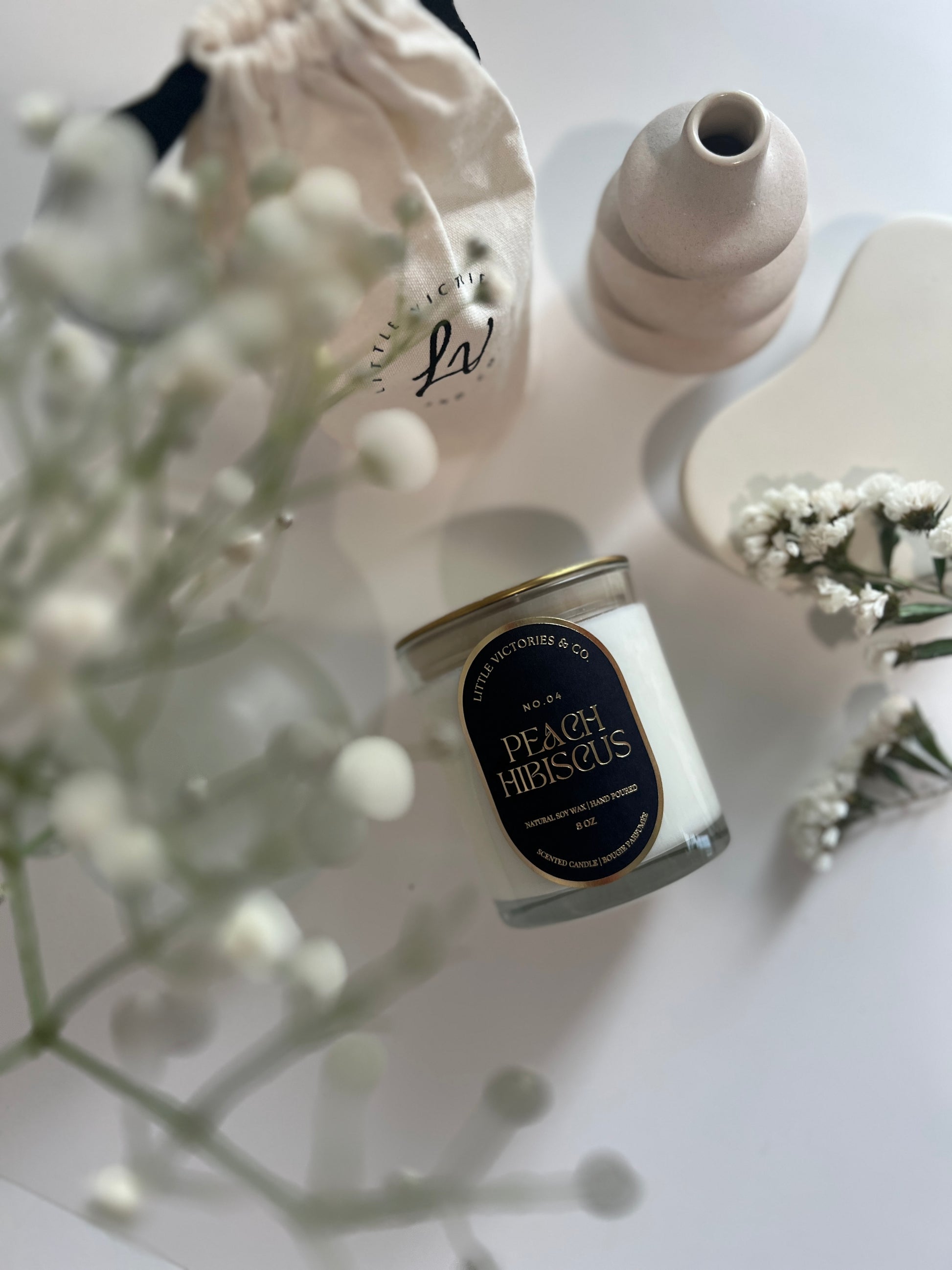 Indulge in the bright, fruity blend of our Peach Hibiscus Scented Candle. The succulent sweetness of ripe peach is elevated by the delicate floral notes of hibiscus, while the crisp, refreshing aroma of Asian pear adds a subtle, airy freshness. This expertly crafted candle fills your space with a harmonious fusion of sweet and floral, creating a light, inviting ambiance that’s perfect for any room.